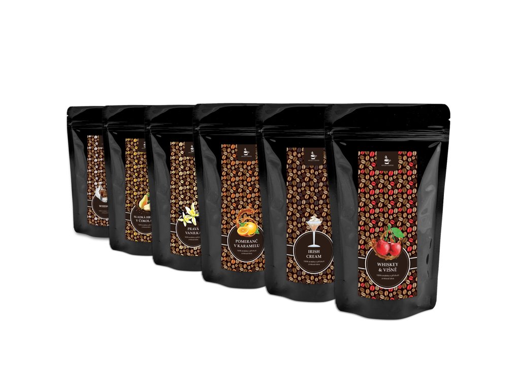 - zrnková káva 100% Arabica, aroma whisky (2%), višně (2%)